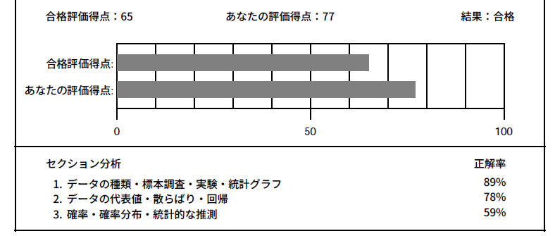 試験が終わると、すぐに結果がプリントアウトされる。結果は77点で合格だった。
